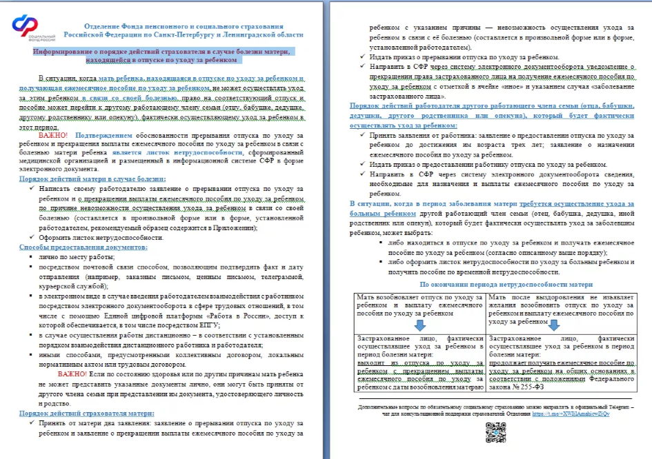 Информирование о порядке действий страхователя в случае болезни матери,