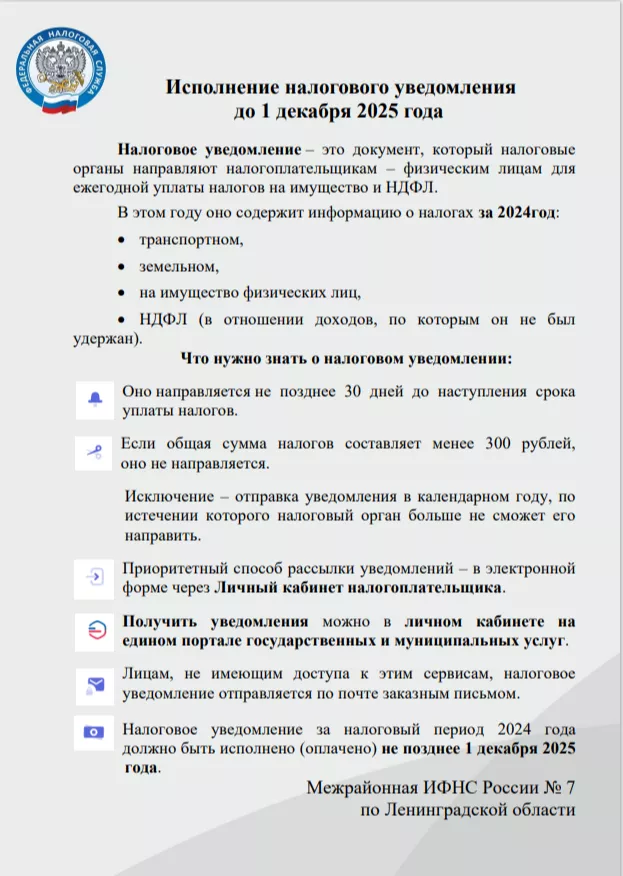 Информирование от Межрайонной ИФНС России № 7 по Ленинградской области