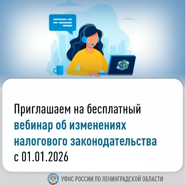 УФНС России по Ленинградской области приглашает на бесплатный вебинар, посвященный ключевым изменениям налогового законодательства, которые вступят в силу с 1 января 2026 года.