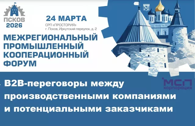 24 марта 2026 года в рамках Межрегионального промышленного кооперационного форума в Пскове при поддержке Корпорации МСП состоятся B2B-переговоры (переговорная сессия) между промышленными производственным МСП и потенциальными заказчиками.