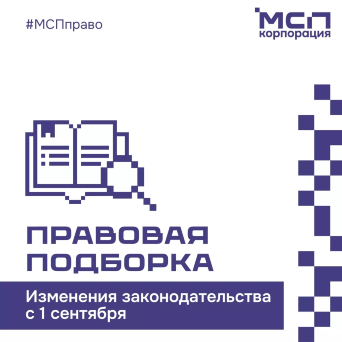 Главная→Новости→Правовая подборка от Корпорации МСП :Напоминаем о значимых для бизнеса изменениях в законодательстве, которые вступают в силу с 1 сентября