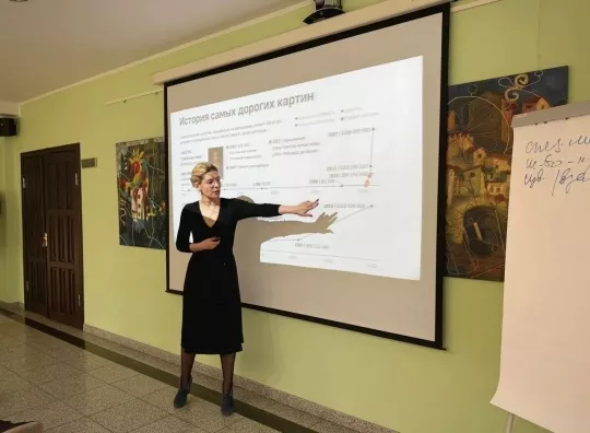 Мастер-класс провела Кристина Сасонко — управляющий партнер Arts Square Gallery (Москва и Санкт-Петербург), историк искусства и доцент СПбГУПТД.